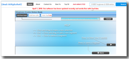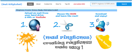 MadRingtones là một dịch vụ trực tuyến cho phép bạn tạo nhạc chuông lấy từ các nguồn như: trên máy, nhập địa chỉ URL và lấy từ YouTube dịch vụ chia sẻ giải trí lớn nhất hiện nay.